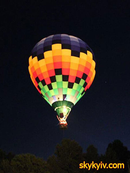 Привязной полет на воздушном шаре в рамках международного фестиваля воздушных змеев, вечерняя подсветка воздушного шара